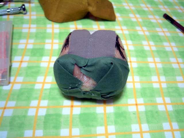 ズボンはグリーンの生地で制作。ちなみに本編ではほとんど見える事が無い部分だ。